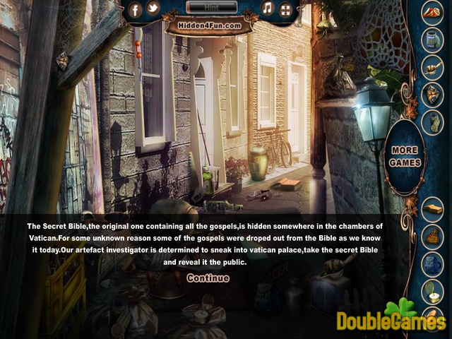 ขอต้อนรับเข้าสู่เกมออนไลน์หาของที่แสนตื่นเต้นเกมใหม่ภายใต้ชื่อ Secrets Of The Vatican Palace! พบกับเพื่อนใหม่ของคุณผู้ซึ่งกำลังมองหาสิ่งประดิษฐ์ลึกลับอยู่ เขากำลังวางแผนที่จะเข้าไปสู่วังวาติกันอันโด่งดังเพื่อขโมยไบเบิลลับที่ถูกซ่อนมานานนับเป็นปีๆ โลกทั้งใบต้องได้เห็ยไบเบิลฉบับนี้ ดังนั้นคุณจะช่วยวีรบุรุษของเราค้นหาให้พบ สำรวจสถานที่ต่างๆ, มองหาวัตถุที่มีอยู่มากมาย , กล้าหาญและมีสมาธิ มันอาจจะเป็นสิ่งที่อันตรายได้ และคุณจะต้องรู้วิธีการหลบเลี่ยงอุปสรรค ลองเสี่ยงดูสักตั้ง ไปแล้วเก็บไบเบิลกลับมา! เล่นเกม Secrets Of The Vatican Palace ได้ฟรีแล้วตอนนี้